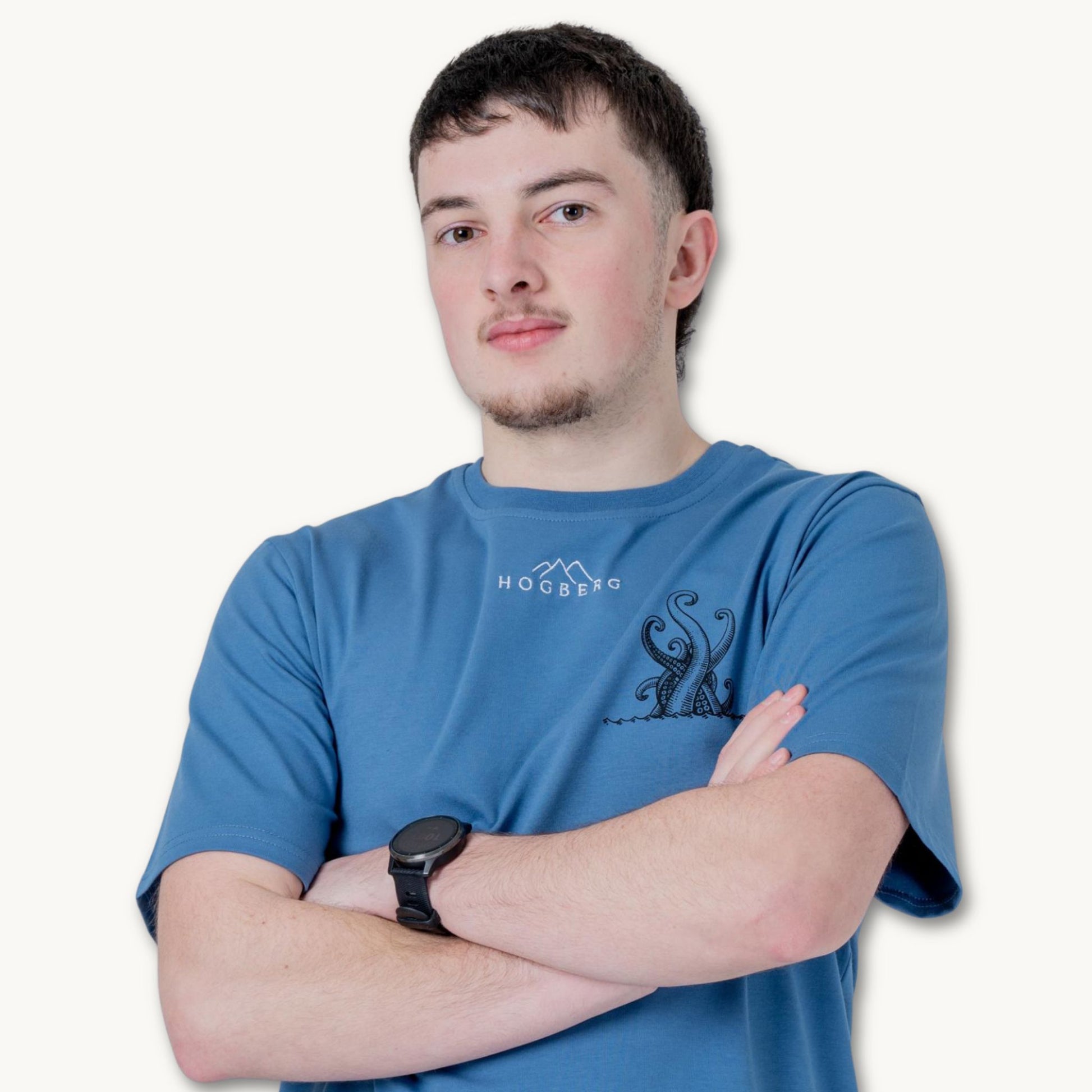 Deep Blue ist ein hochwertiges T-Shirt in tiefem Jeansblau. Der moderne Print und das dezent gestickte Markenlogo sorgen für einen klaren, hochwertigen Look. Ein vielseitiges Shirt für Alltag und Freizeit.